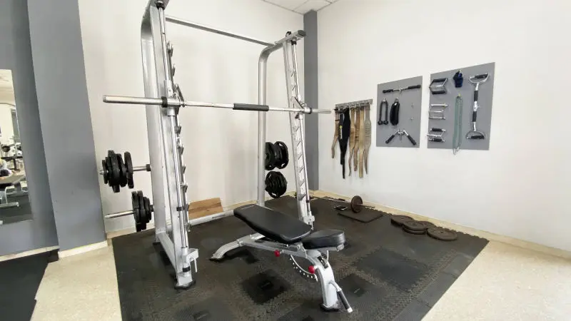 Tenemos una zona de gimnasio y fitness donde puedes ejercitarte